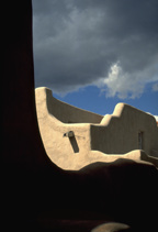 Adobe roof detail, La Fonda Hotel, Santa Fe, New Mexico.