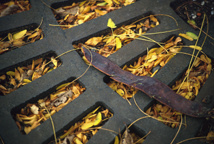 Leaves in grate, Santa Fe, New Mexico.