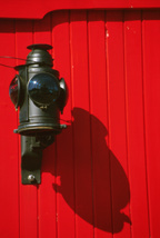 Detail, converted caboose, Bank of Fayetteville, Arkansas.
